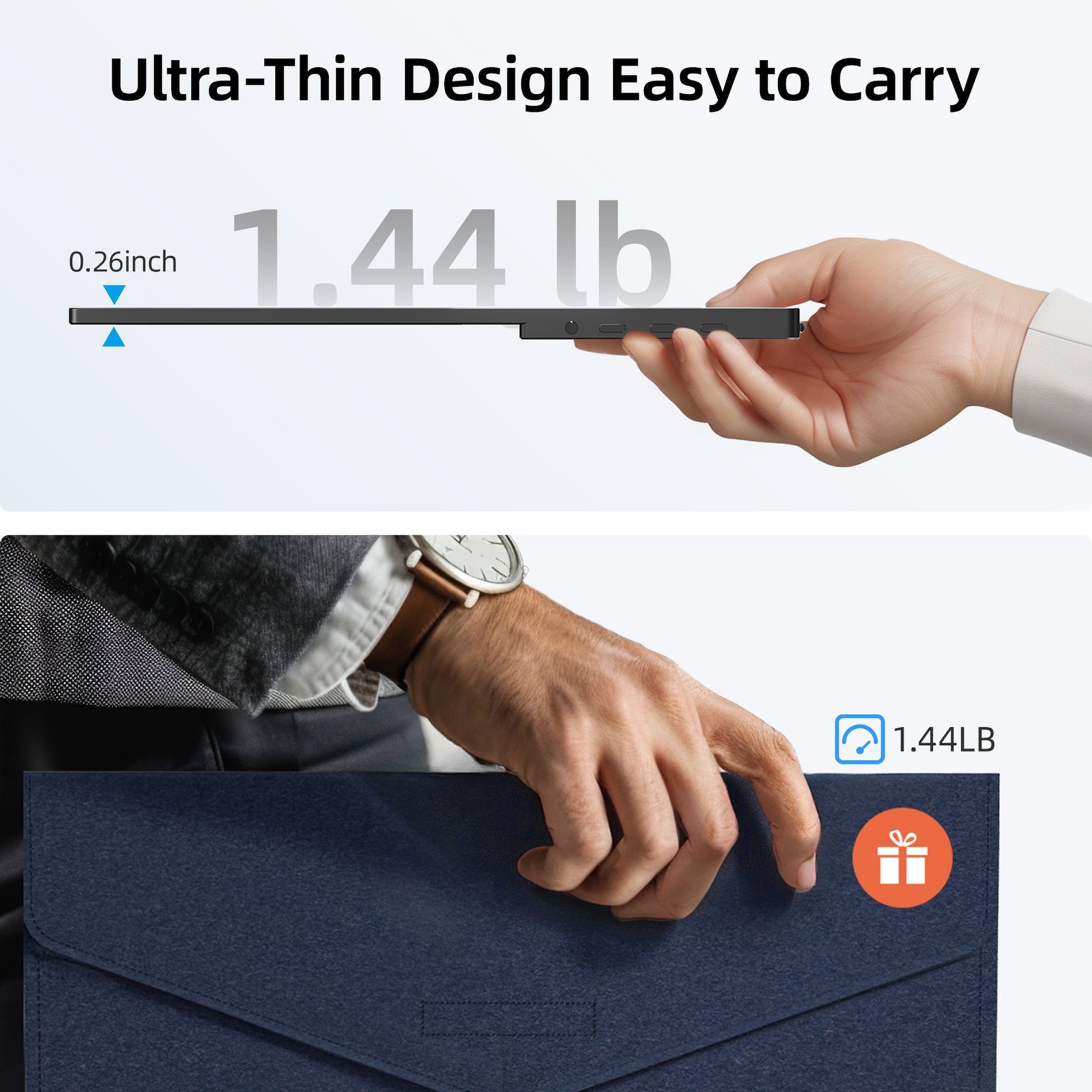 Weighing just 1.44 lbs and as thin as a smartphone, makes it easy to carry, allowing you to set up an efficient workspace wherever you are, be it in a hotel, café, or airport. Ingnok Travel Monitor is ideal for traveling.